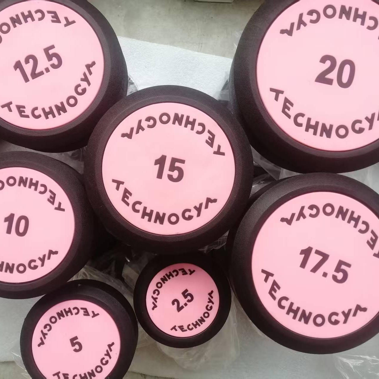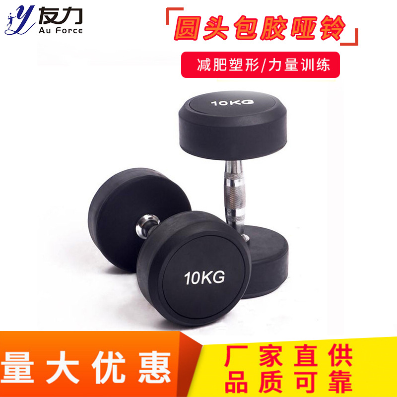 圆头固定哑铃白字橡胶健身哑铃男士哑铃健身房包胶哑铃家用练臂肌