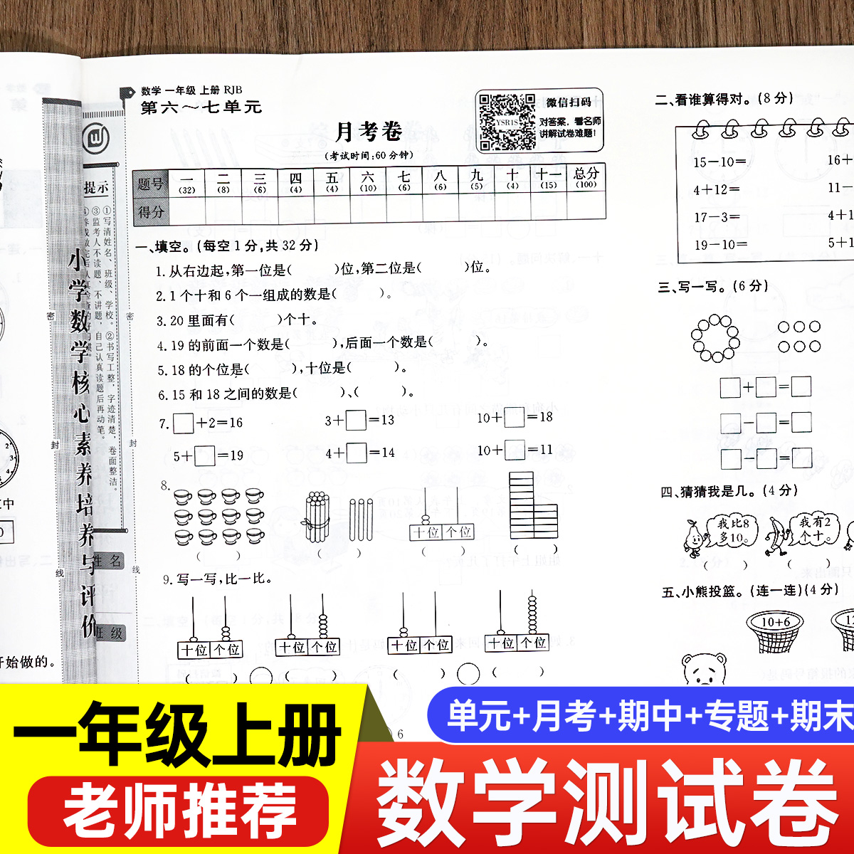 一年级试卷测试卷全套人教版上册语文数学单元考试卷子专项训练 小学1上学期真题同步练习册课外练习题单元作业人教部编版语数期末