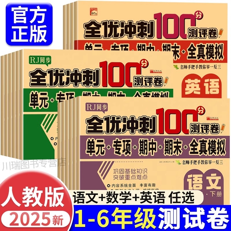 全优冲刺一百分小学一年级试卷测试卷全套语文数学二三四五六年级上册下册英语同步训练习题册单元期中期末模拟考试测评卷子100分