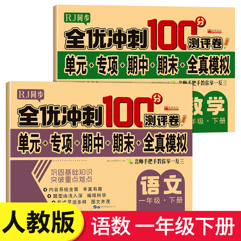 一年级试卷测试卷全套全优冲刺100分测评卷1一年级下册语文数学全套人教部编版同步训练习册周考月考单元检测期中期末考试冲刺卷子