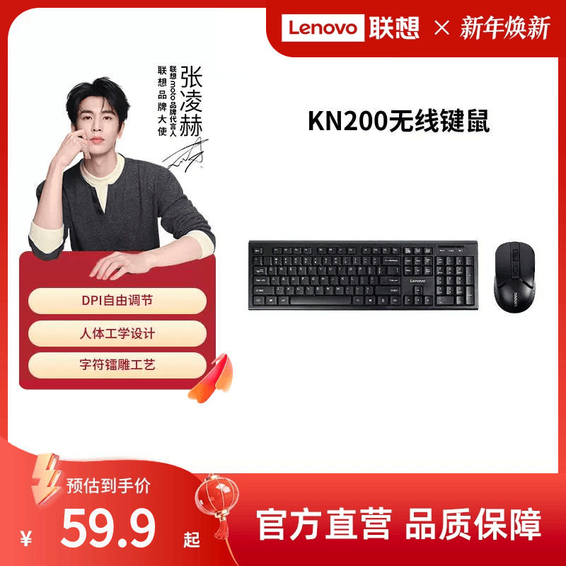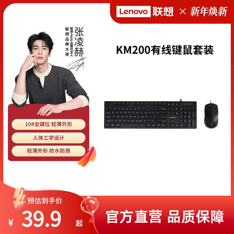 联想KM200有线键鼠套装台式一体机笔记本电脑防溅洒通用键盘鼠标