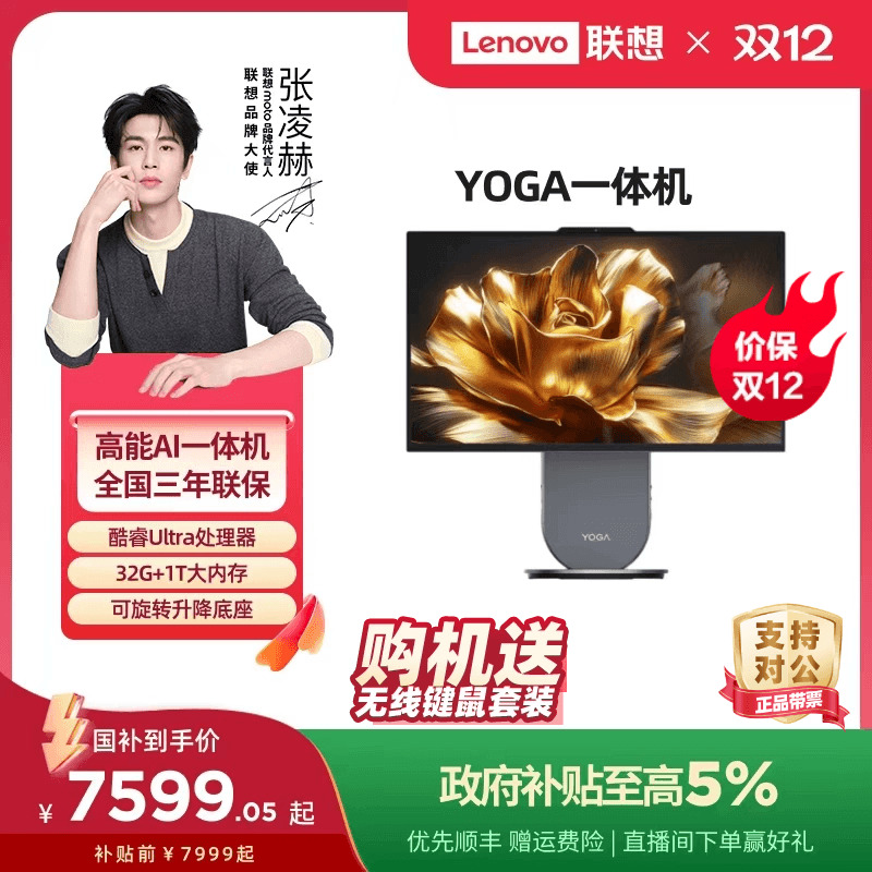 【张凌赫推荐】联想YOGA Air32/YOGA 27高能AI一体机电脑 32/27英寸大屏 家用办公学习游戏设计ps电脑