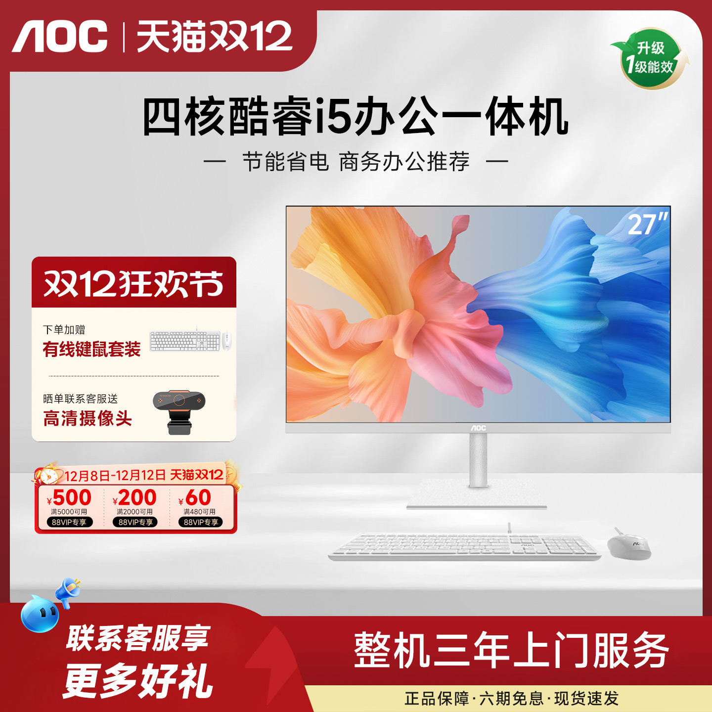 AOC官方新款电脑一体机全套23.8/27英寸护眼大屏酷睿i5/i7/i9家用学习办公娱乐苹果华为华硕戴尔联想台式整机