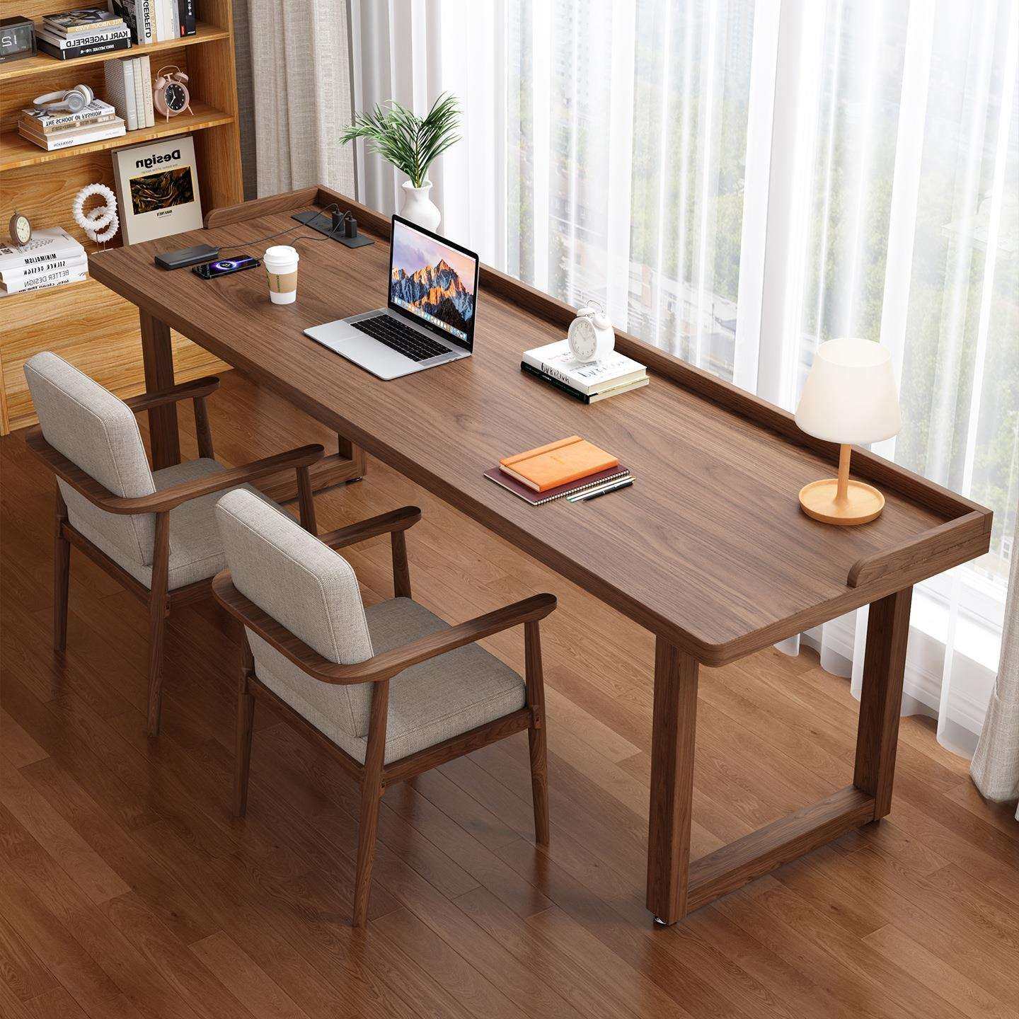 全实木大板办公电脑桌台式简约双人现代家用书桌北欧轻奢电竞工作