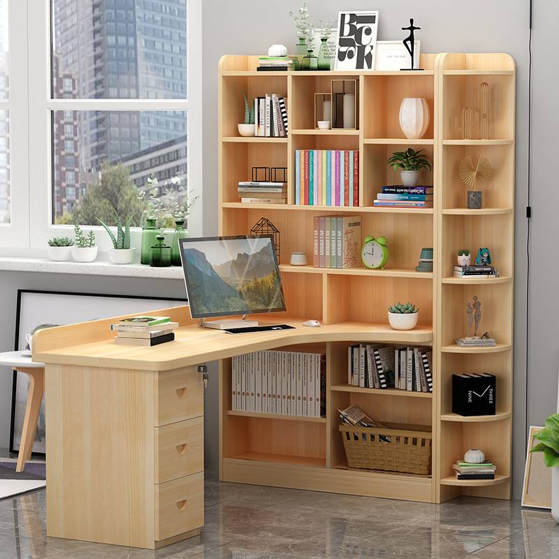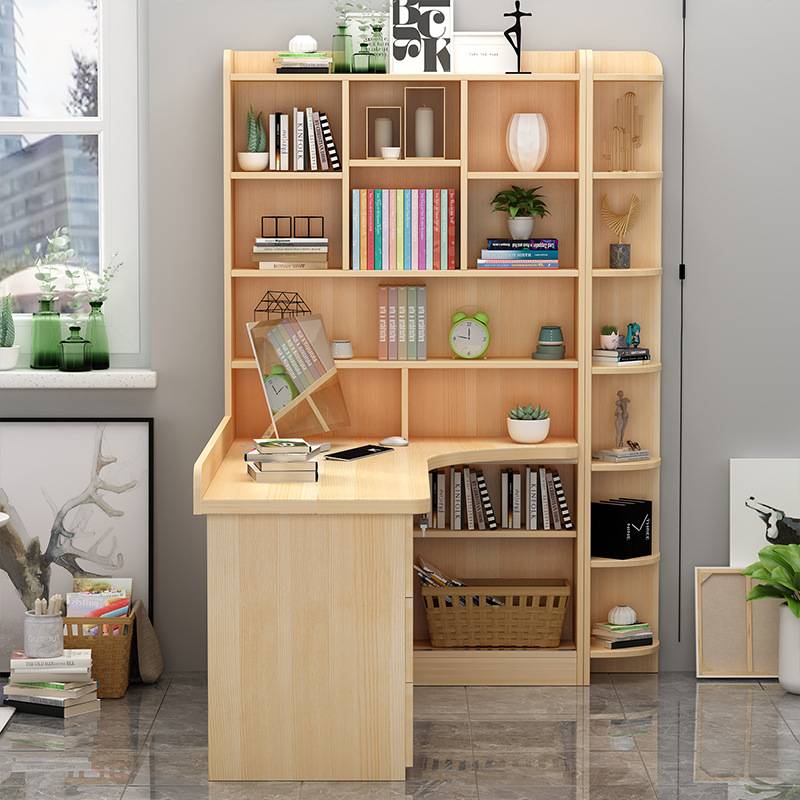 全实木书柜书桌一体式学生洞洞板学习桌家用办公桌转角台式电脑桌