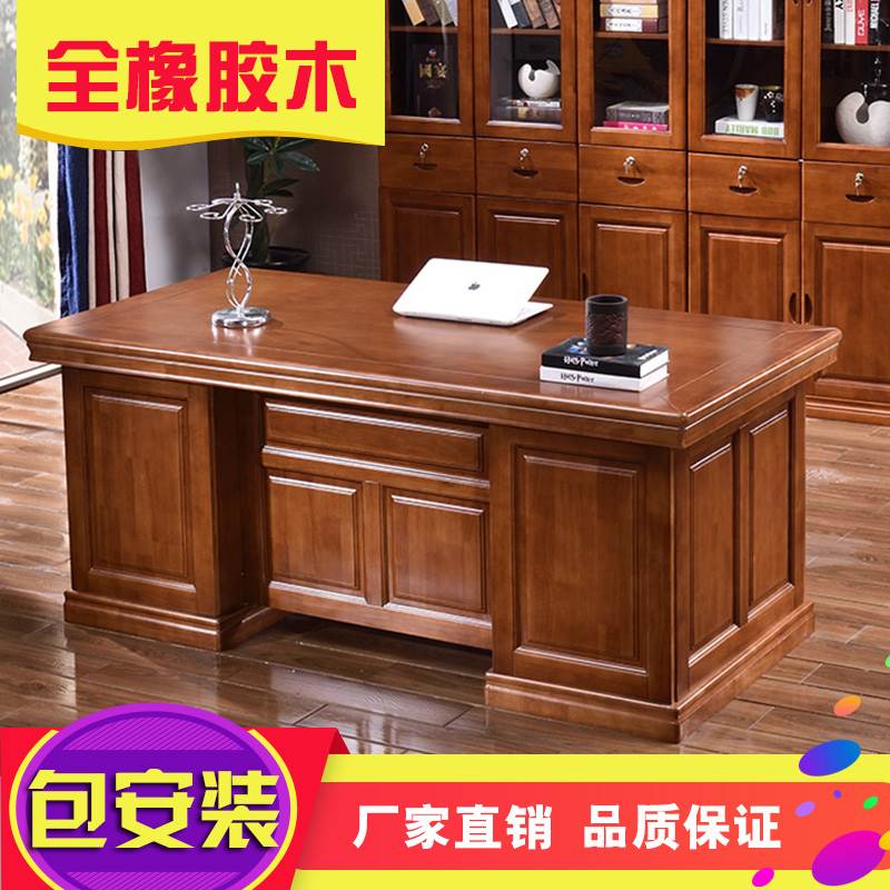 全实木办公桌家用台式电脑桌橡胶木书房书桌中式老板桌子总裁班台