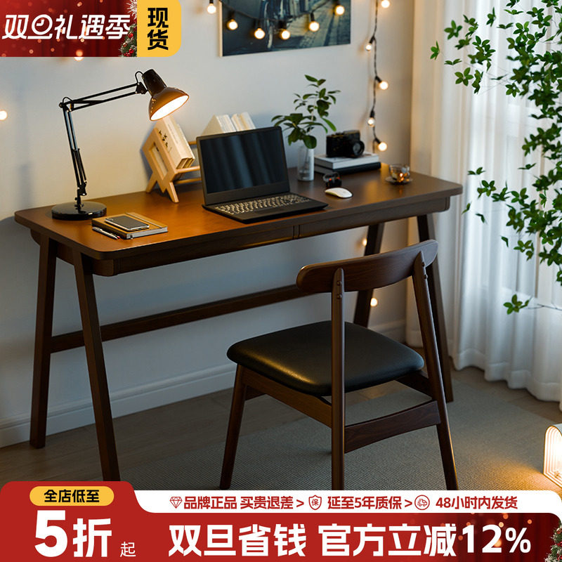 全实木书桌北欧简约家用电脑台式桌日式学生写字桌台卧室办公桌子