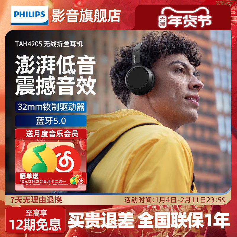 Philips/飞利浦TAH4205无线蓝牙可折叠头戴式耳机电脑手机