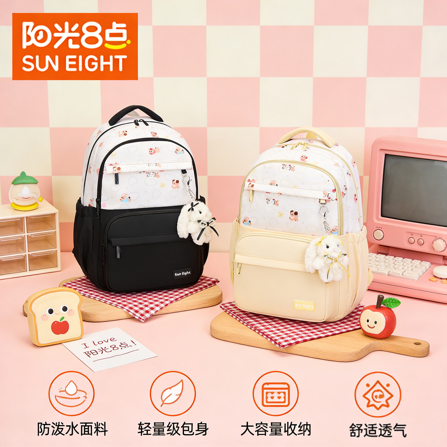 阳光8点书包小学生女五六年级初高中生儿童轻便护脊大容量双肩包