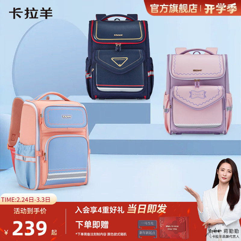卡拉羊1-4-6年级大嘴书包小学生女轻便减负防下坠男大容量双肩包
