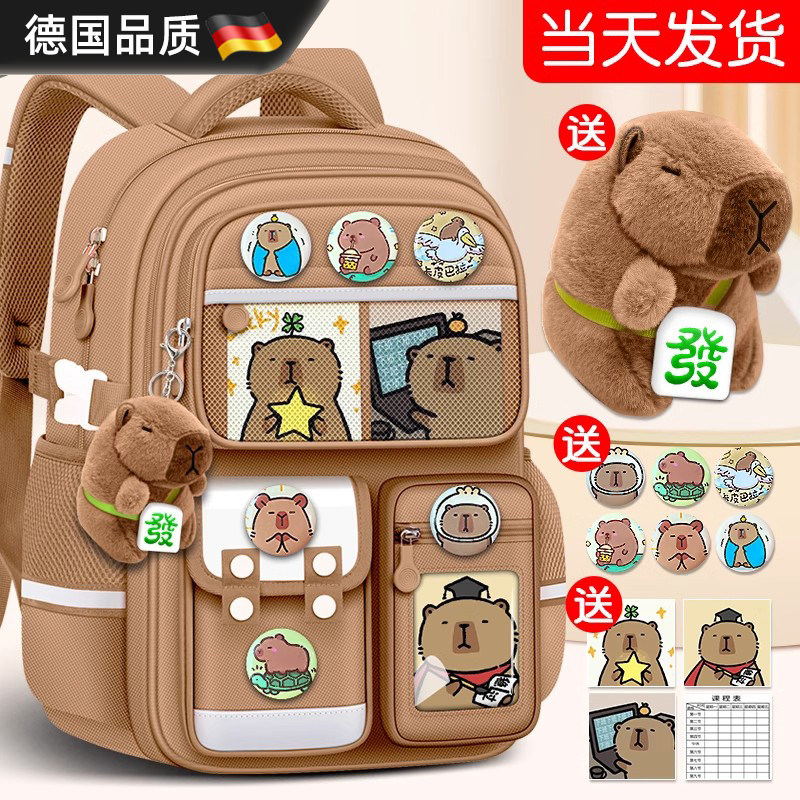 德国2026新款卡皮巴拉书包小学生女生减负护脊男孩一到三到六年级