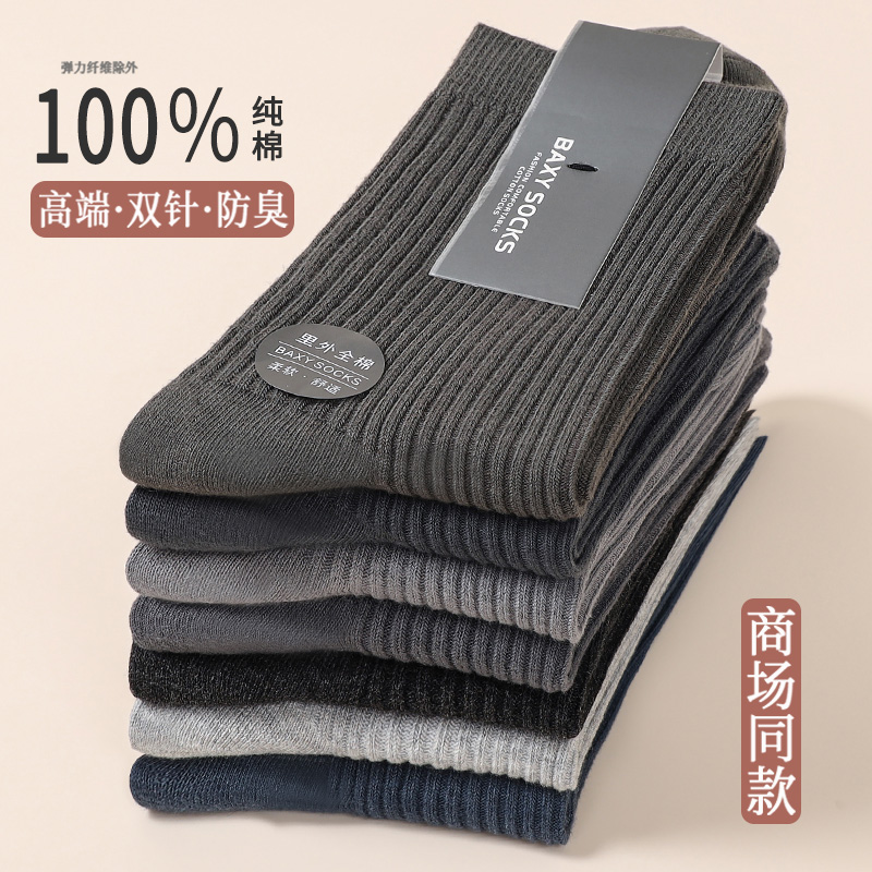 100%全棉袜子男士纯棉中筒袜春秋透气吸汗休闲商务男袜礼盒装
