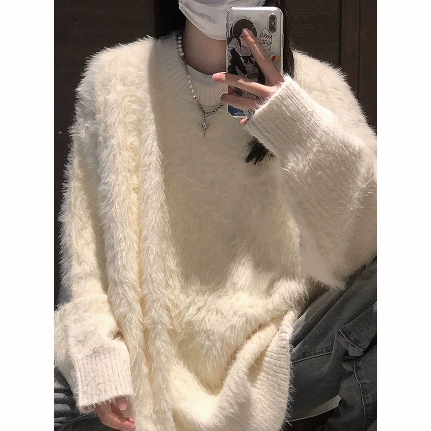 美式复古软糯毛衣男女款秋冬高级慵懒风针织衫内搭加厚马海毛上衣