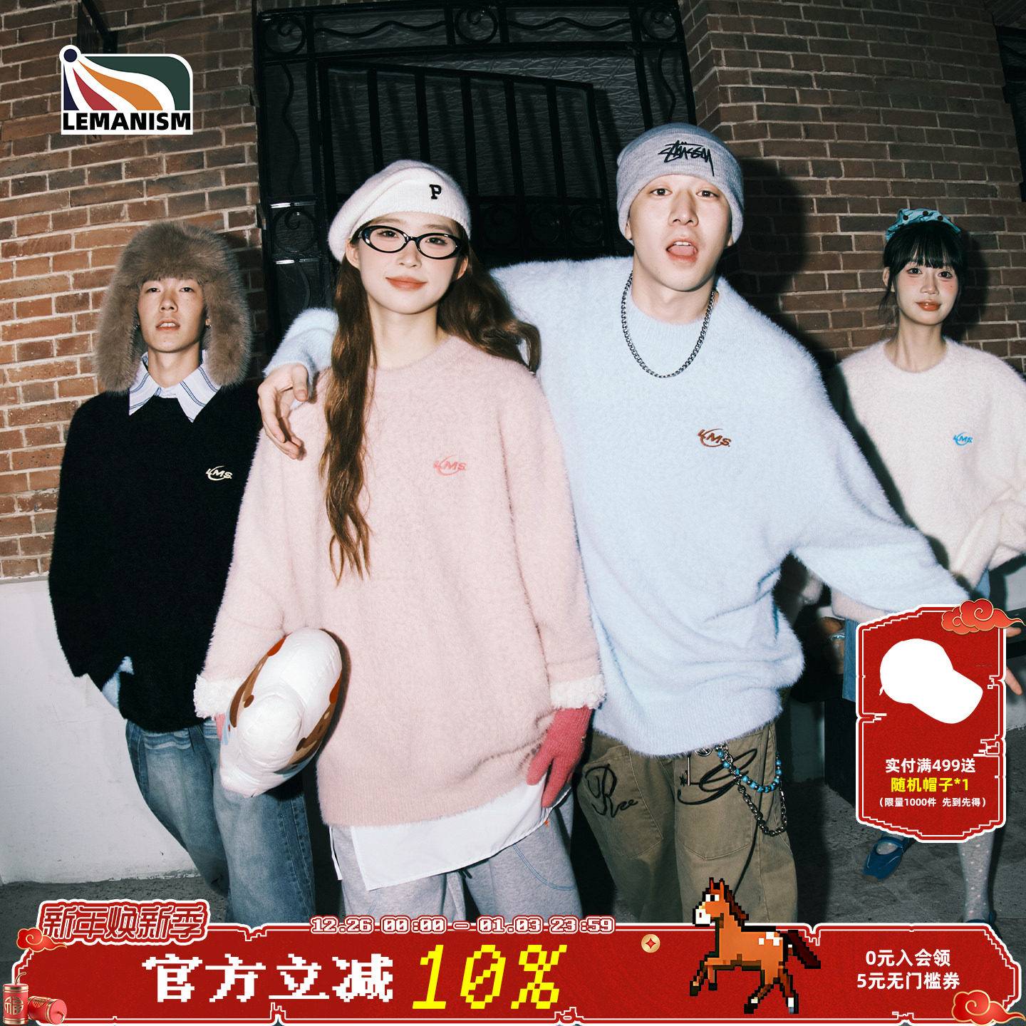 lemanism美式潮流纯色马海毛毛衣男2025春秋季情侣款针织衫上衣