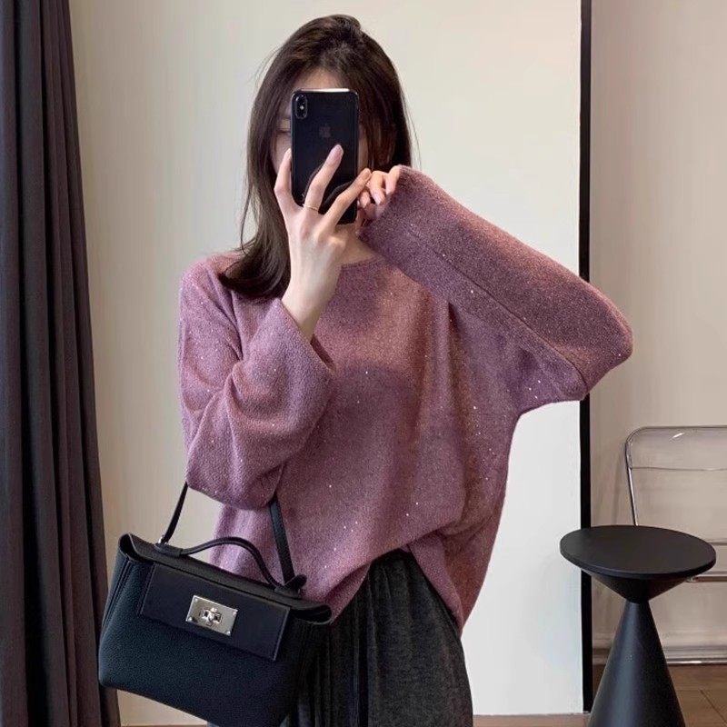 美炸了!薄款超仙显白亮片慵懒马海毛上衣宽松轻奢羊毛针织衫女秋