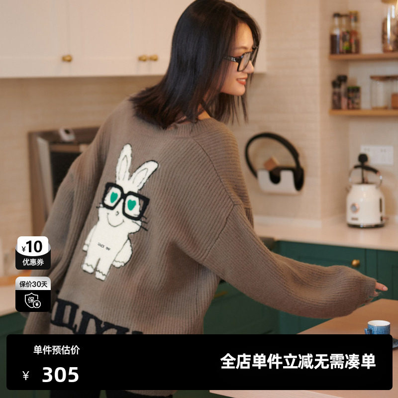 U/TI联名款奶咖灰马海毛上衣女装百搭慵懒感毛衣尤缇时尚冬季新款