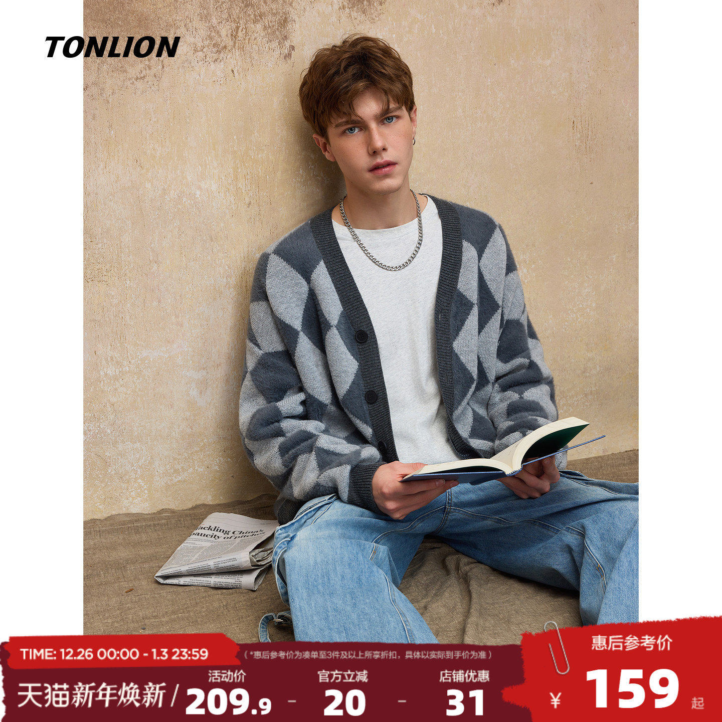唐狮2025秋季新款毛衣开衫男外套宽松复古潮流v领马海毛上衣男生