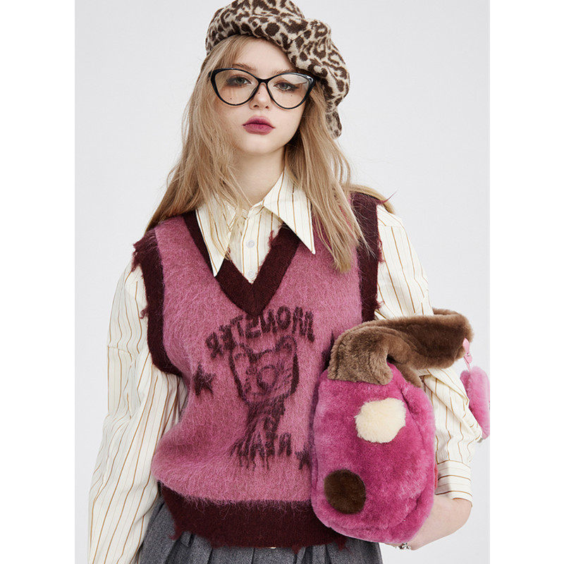 张予曦同款CLOUDSEASON粉色毛衣宽松上衣厚毛织上衣马海毛上衣