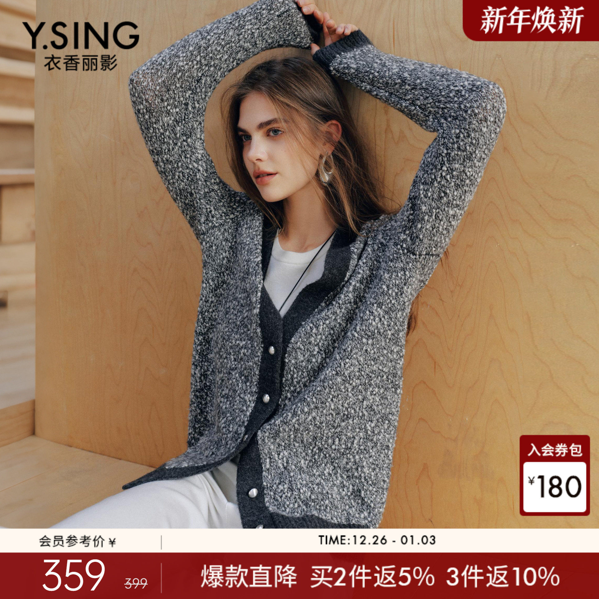 衣香丽影撞色杂花色针织开衫女2025冬装新款宽松慵懒风马海毛上衣