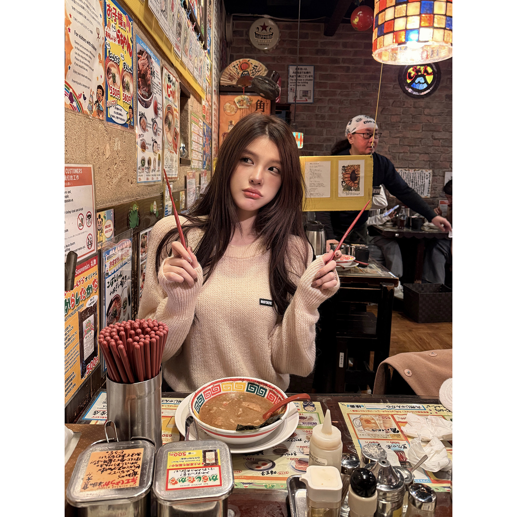 化学少女「奶酪日记」秋冬翻领羊毛马海毛宽松慵懒感毛衣黄色上衣