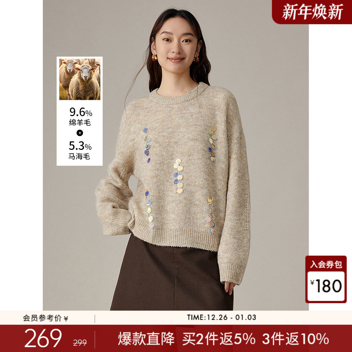 宽松慵懒风亮片毛衣女衣香丽影2025冬季新款米色高级感马海毛上衣