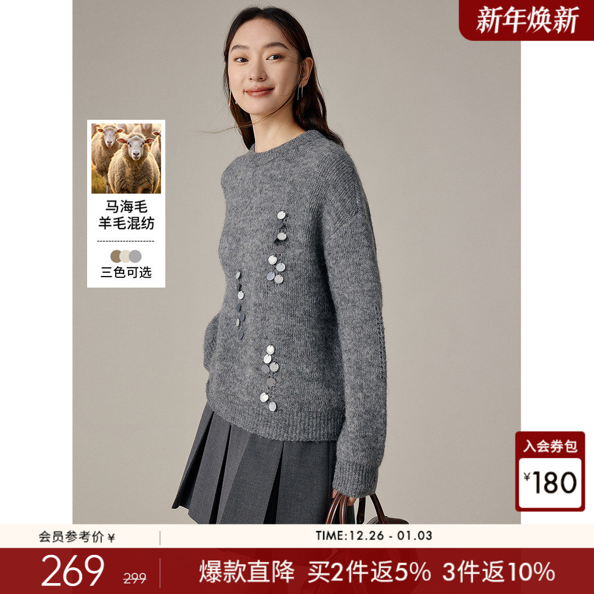 ENJOYME商场同款渐变色亮片套头针织毛衣女2025冬重工马海毛上衣