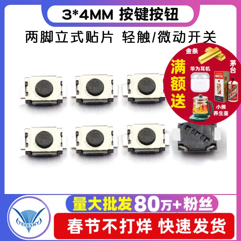 3*4MM 按键按钮 两脚 轻触开关 微动开关 立式贴片开关(20个)