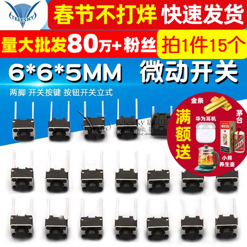 两脚6*6*5MM 微动开关按键轻触开关小按键开关 卧式 中2脚 (15个)