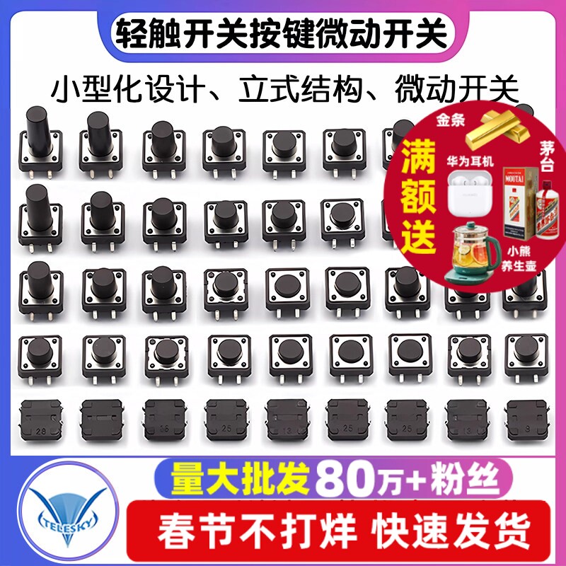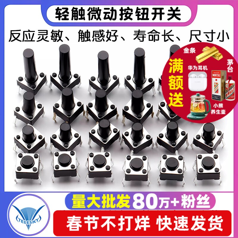 6*6轻触开关12*12贴片4.3/7/8/9/10/11/13mm微动按键按钮立式直插