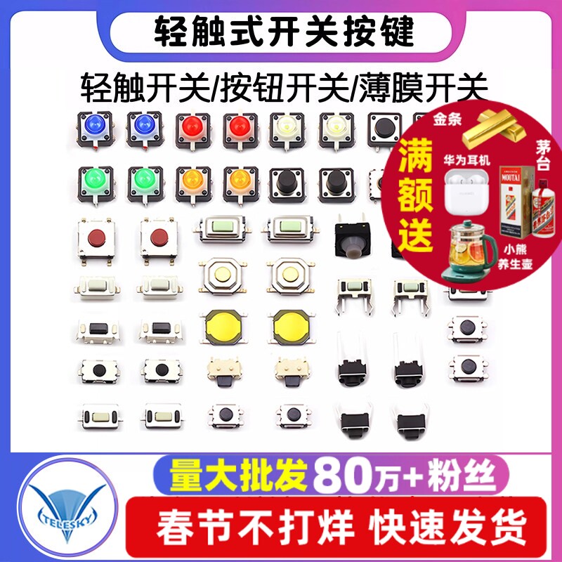 轻触开关小型微动开关薄膜按钮触摸电子按键开关插件贴片2脚4脚
