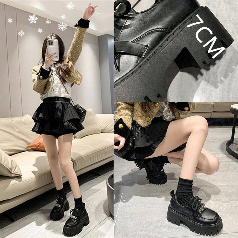 - 小皮鞋女英伦风 粗跟