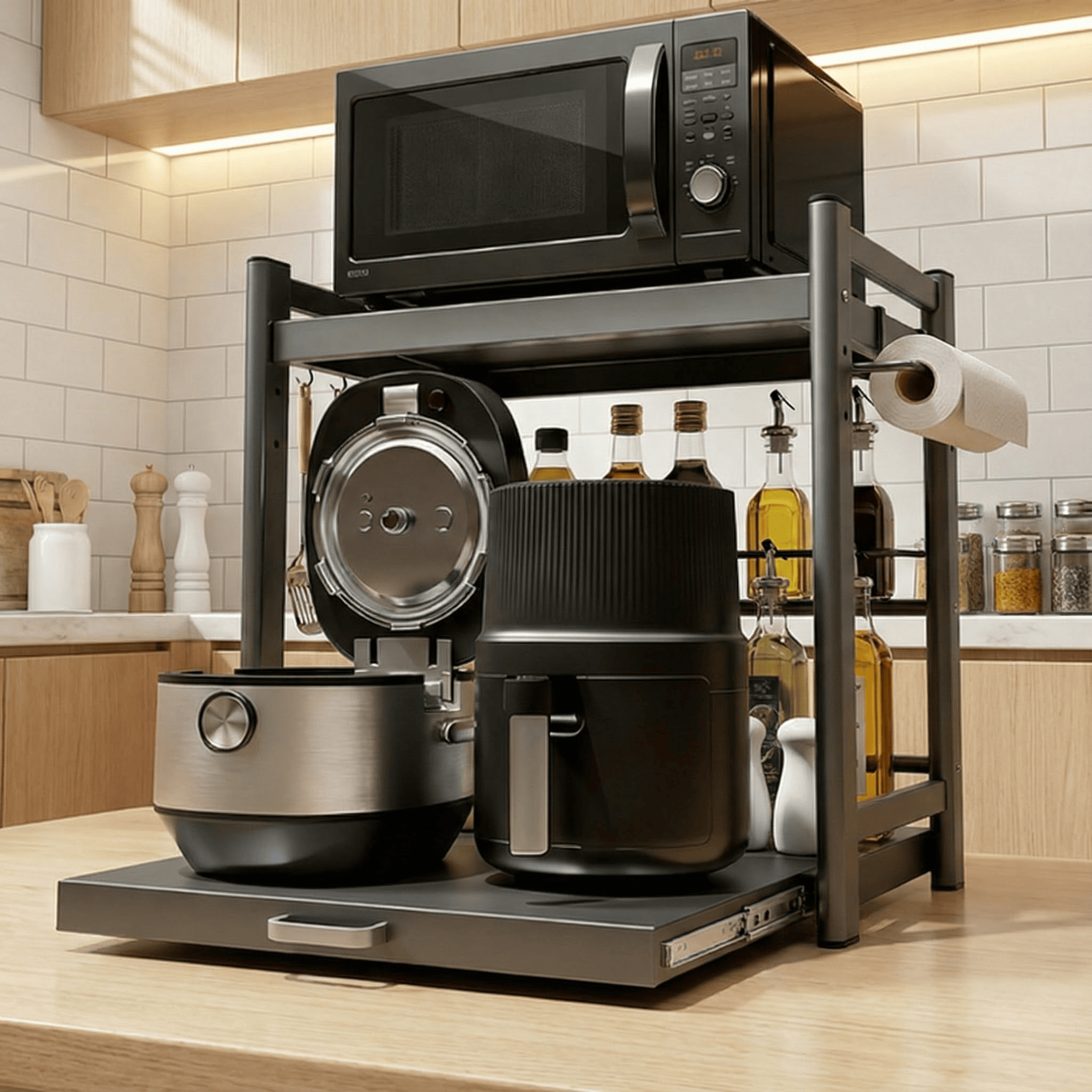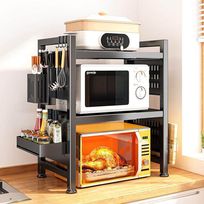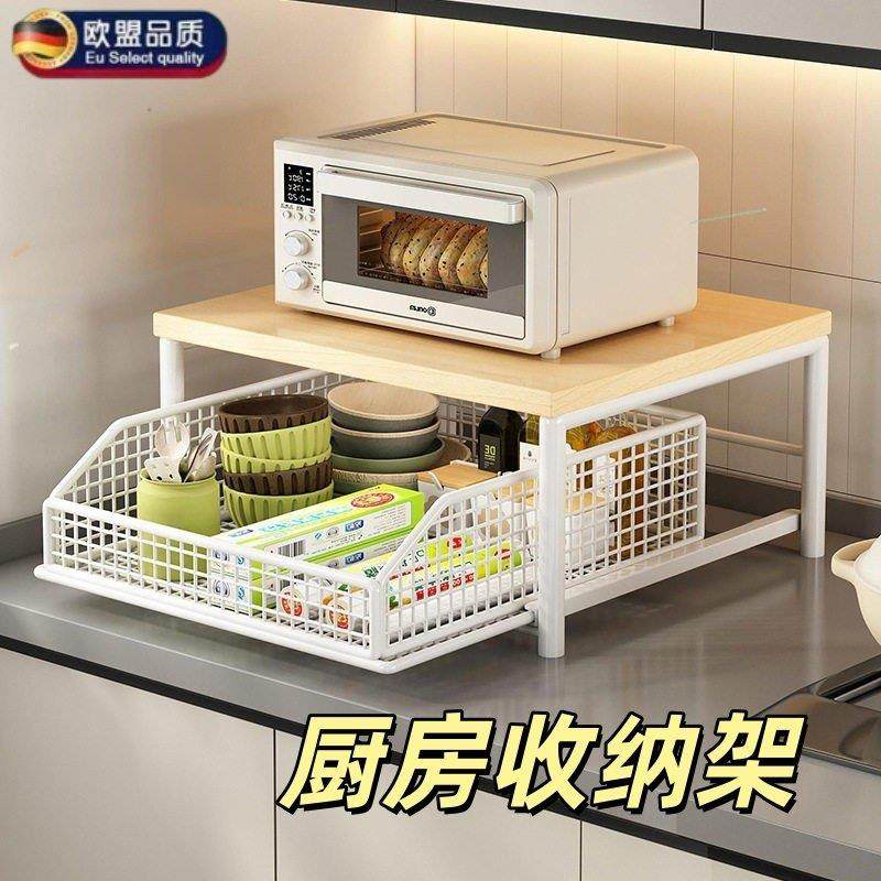 新款厨房多功能微波炉置物架台面放电饭煲的架子双层抽拉式收纳架