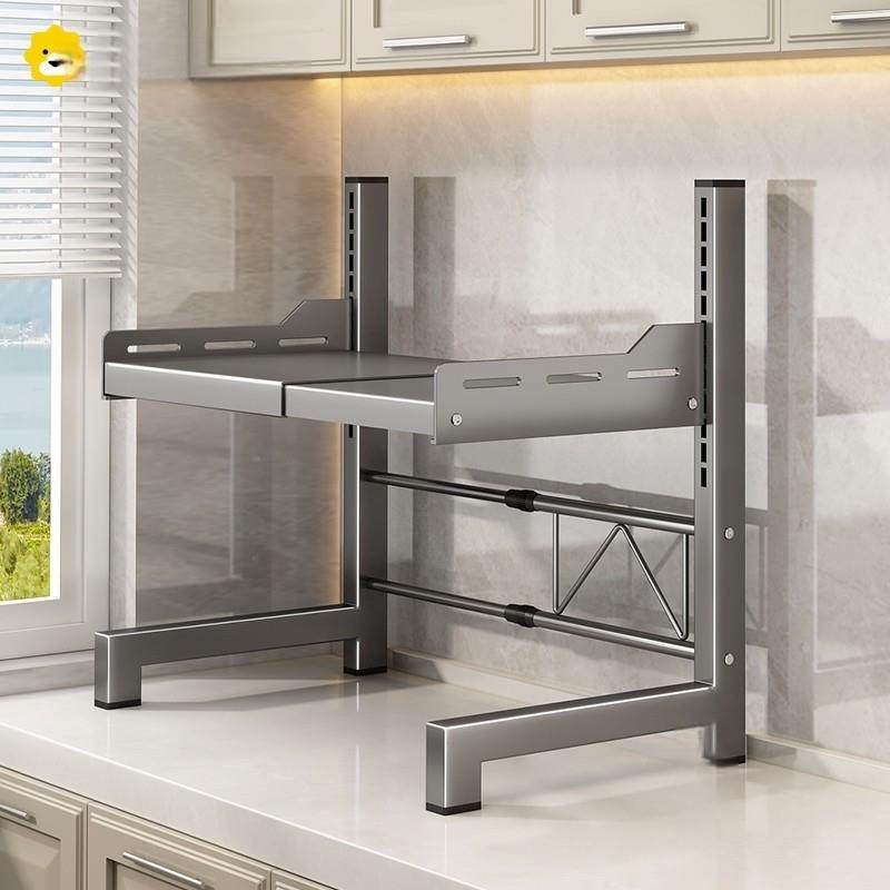 可伸缩微波炉置物架台面厨房家用双层放电饭锅烤箱一体的收纳架子