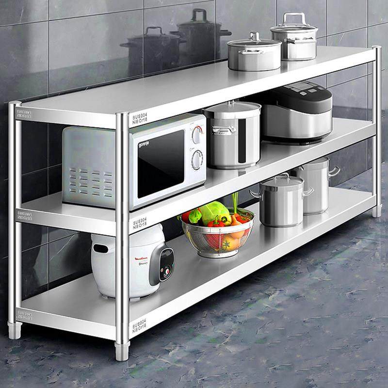 厨房置物架304不锈钢落地三层加厚收纳微波炉烤箱放锅储物货架子