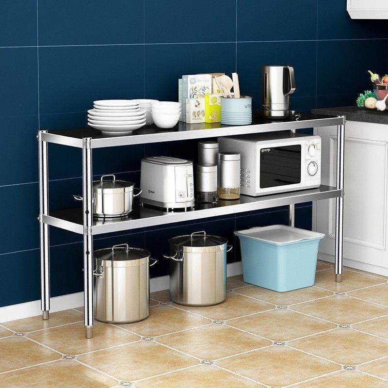 二层收纳微波炉两层储物架厨房不锈钢置物架两层灶台双层放锅架子