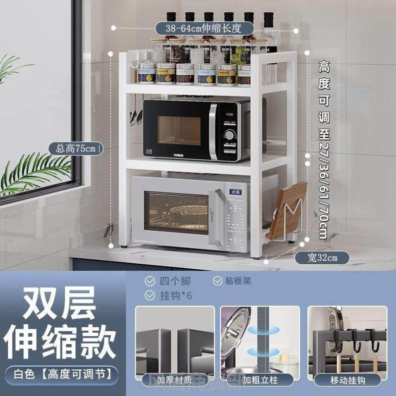 ?厨房微波炉置物架放锅双层锅架子多层家用厨具收纳伸缩烤箱收纳