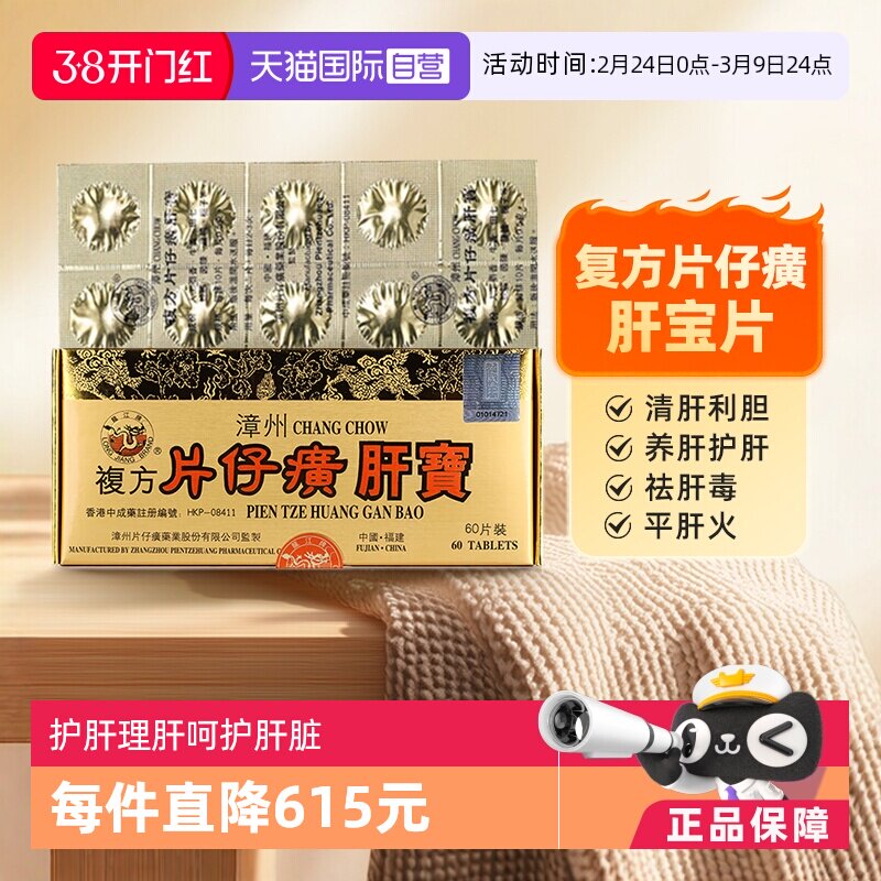 【自营】中国香港版龙江牌漳州复方片仔癀肝宝片护肝利胆消炎片60