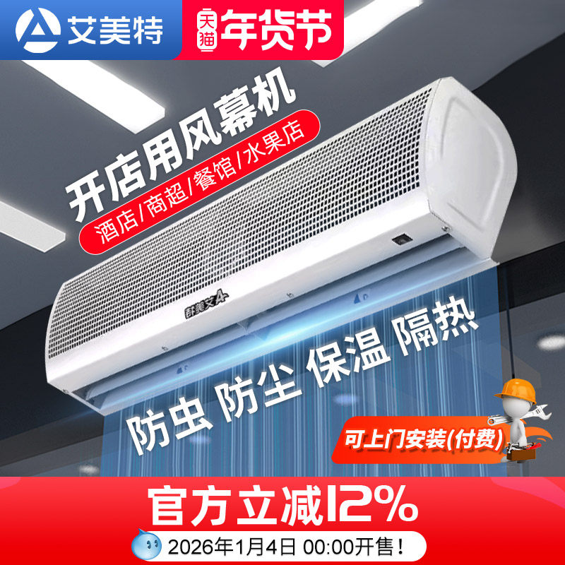 艾美特风幕机商用餐饮店铺门头风帘轿厢电梯横流风扇遥控门口专用