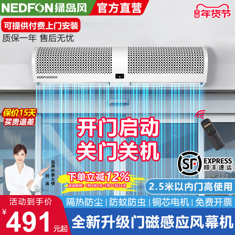 绿岛风冷暖两用遥控电热风幕机商用商铺专餐饮店门口风帘机空气幕
