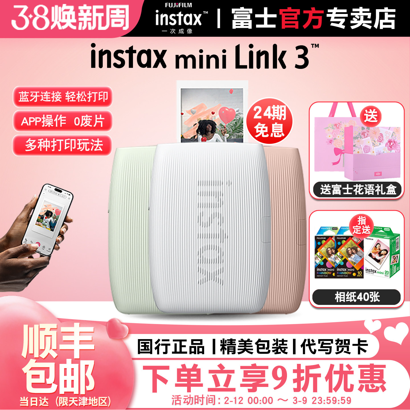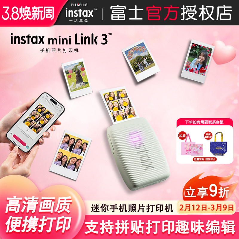 【12期免息】富士instax打印机mini link3手机照片打印机立拍立得手机无线迷你便携式口袋相片打印机礼物