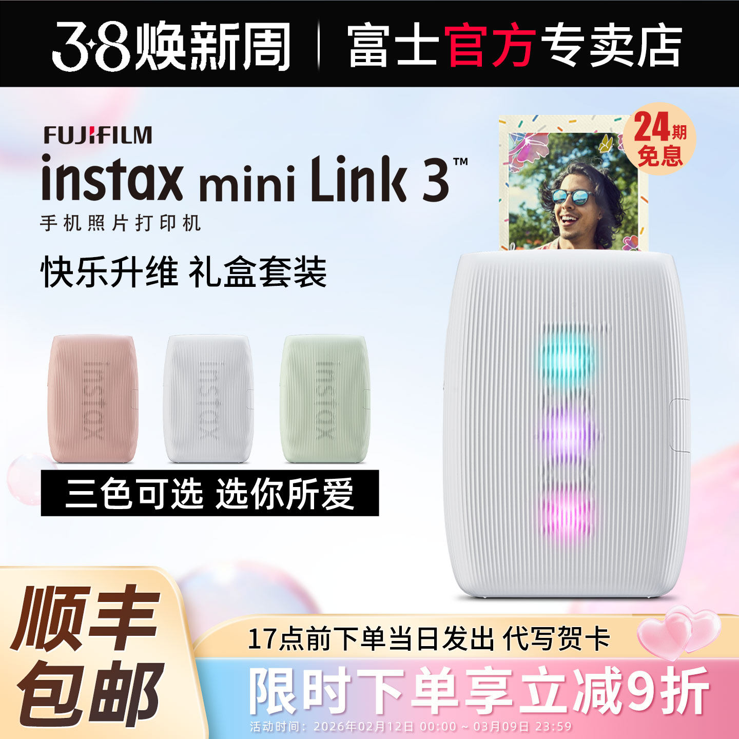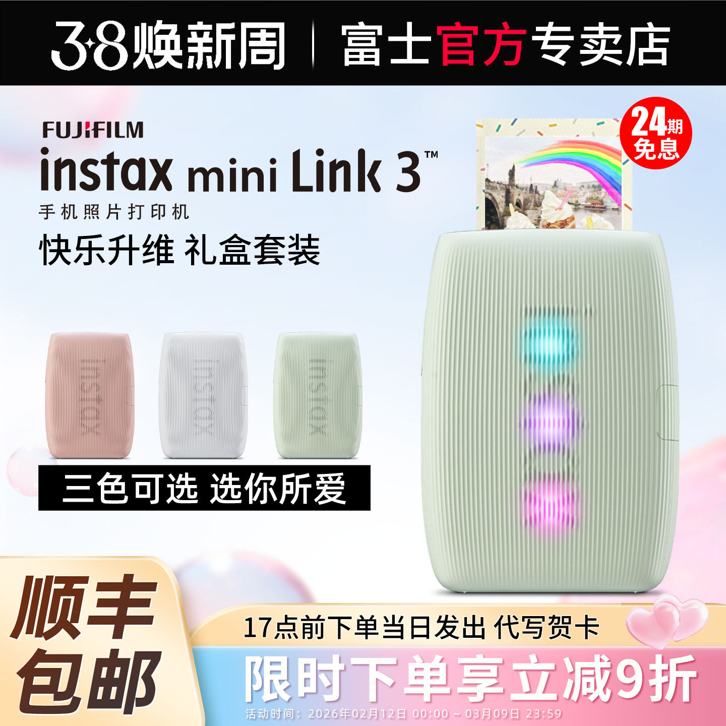 【24期免息】富士instax mini Link3手机照片打印机套餐含拍立得相纸蓝牙无线视频连接迷你便携式照片打印机