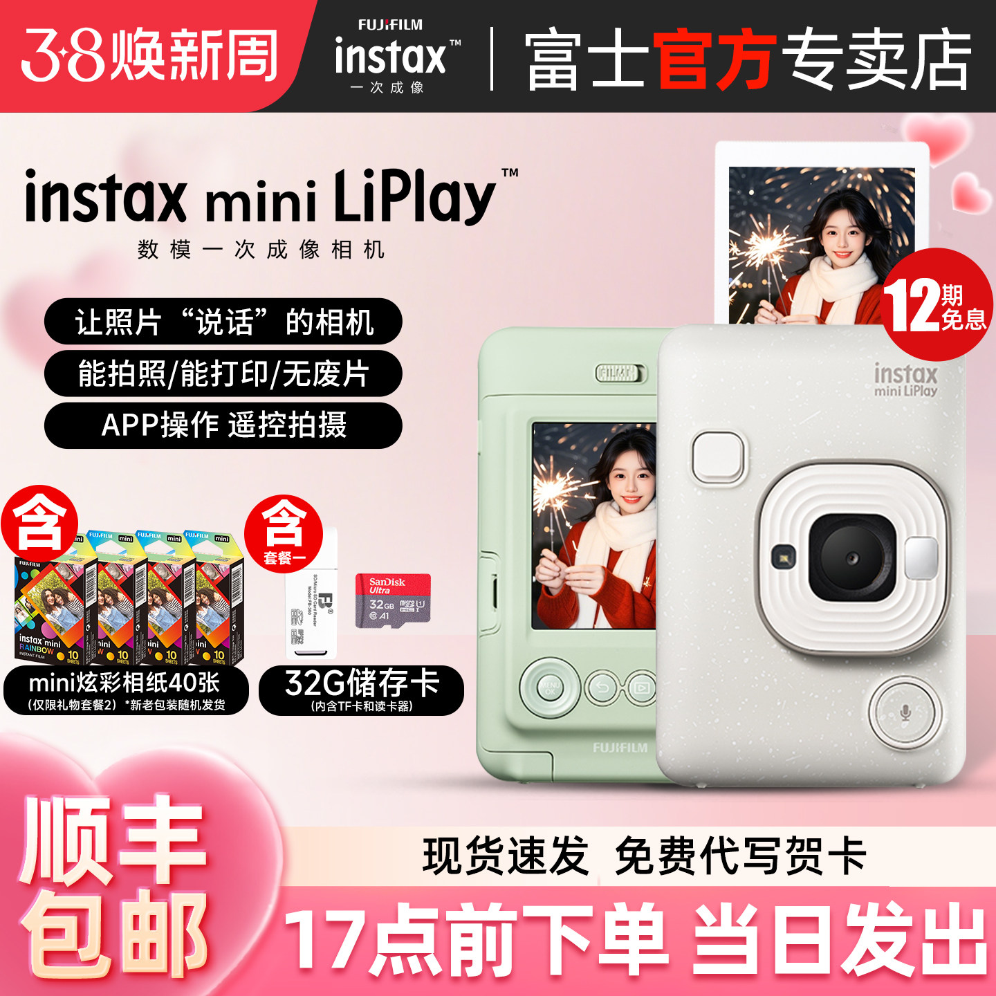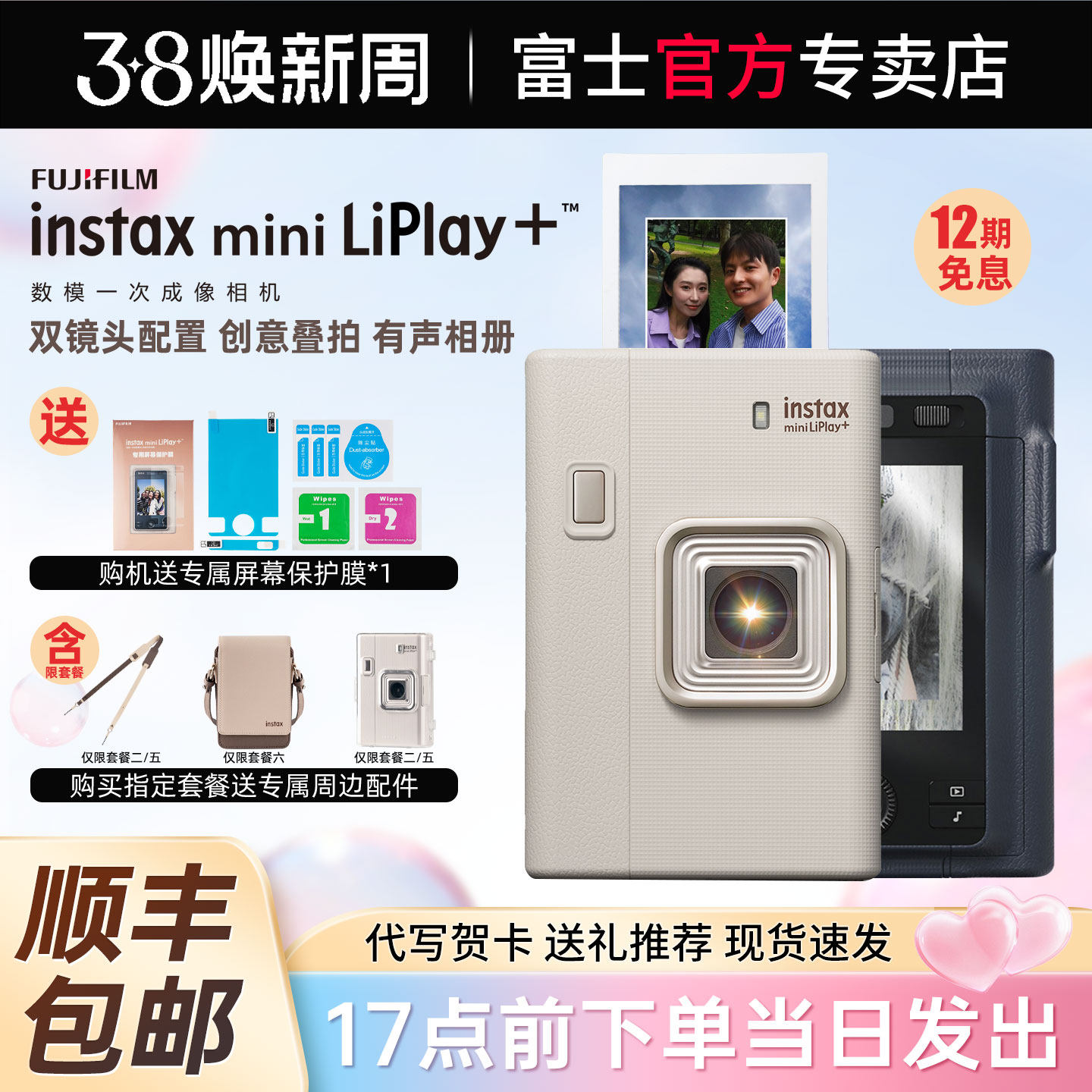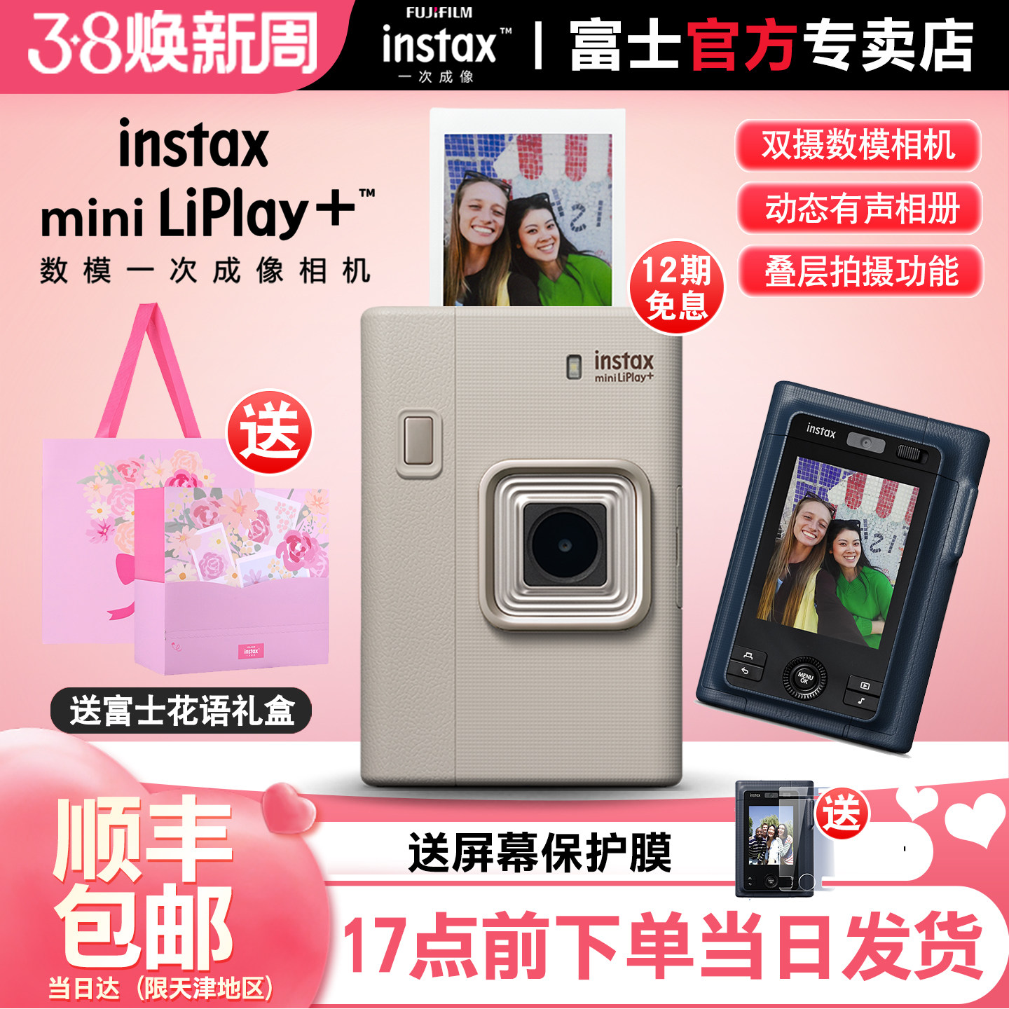 [新品现货]富士一次成像拍立得mini LiPlay+双摄数模一体打印相机