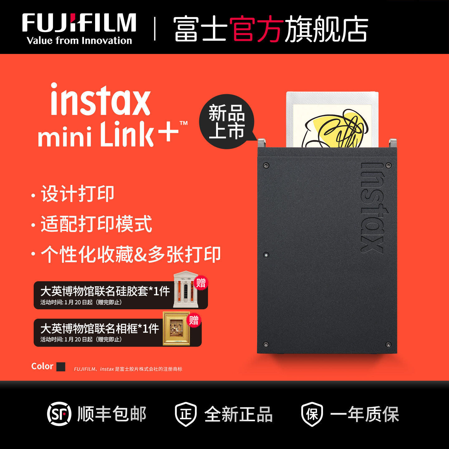 [新品]富士instax mini Link+一次成像手机照片打印机便携式迷你打印机蓝牙连接link+新品小巧便携