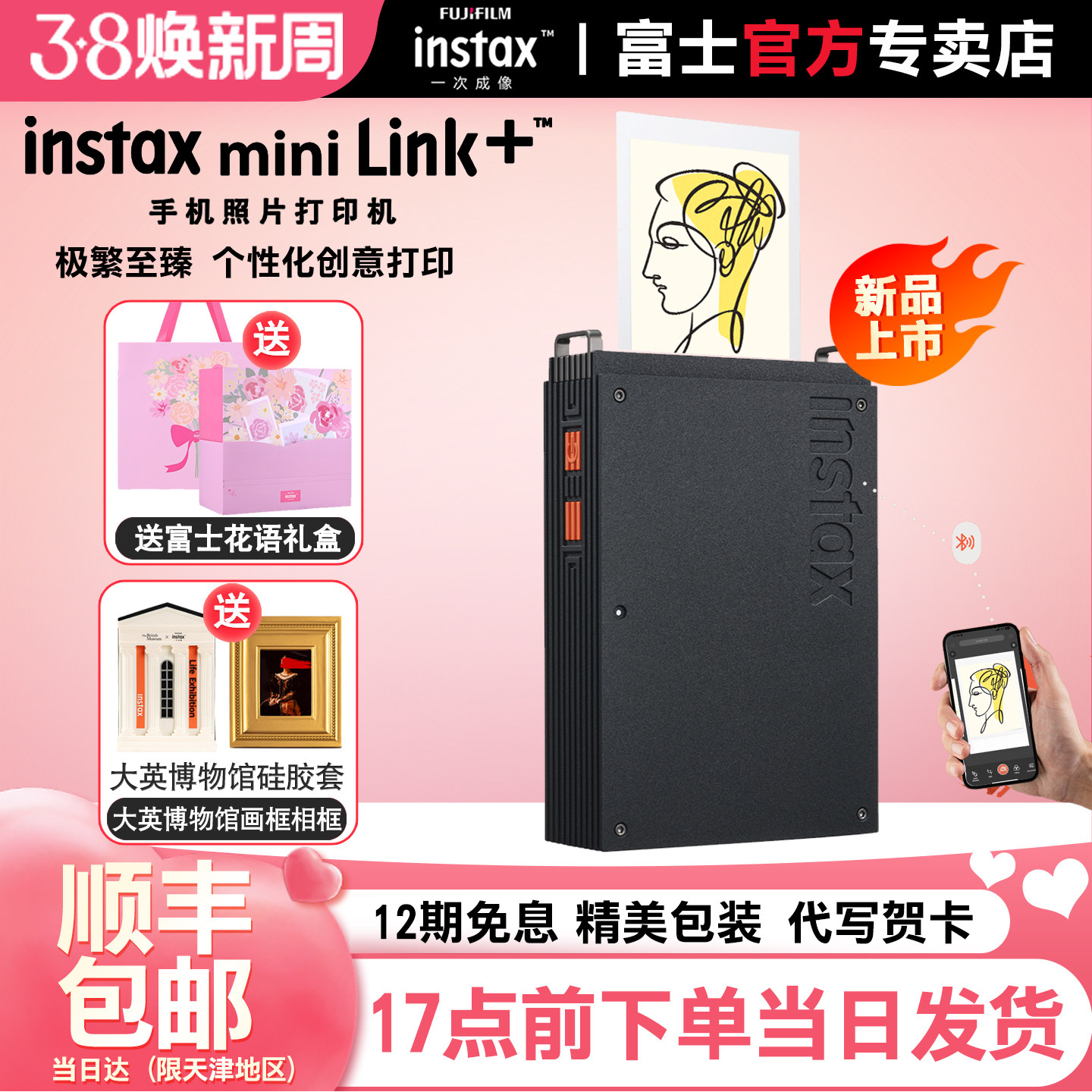 [12期分期]富士照片打印机mini Link+立拍立得instax手机照片迷你便携式口袋相片打印机link3升级款