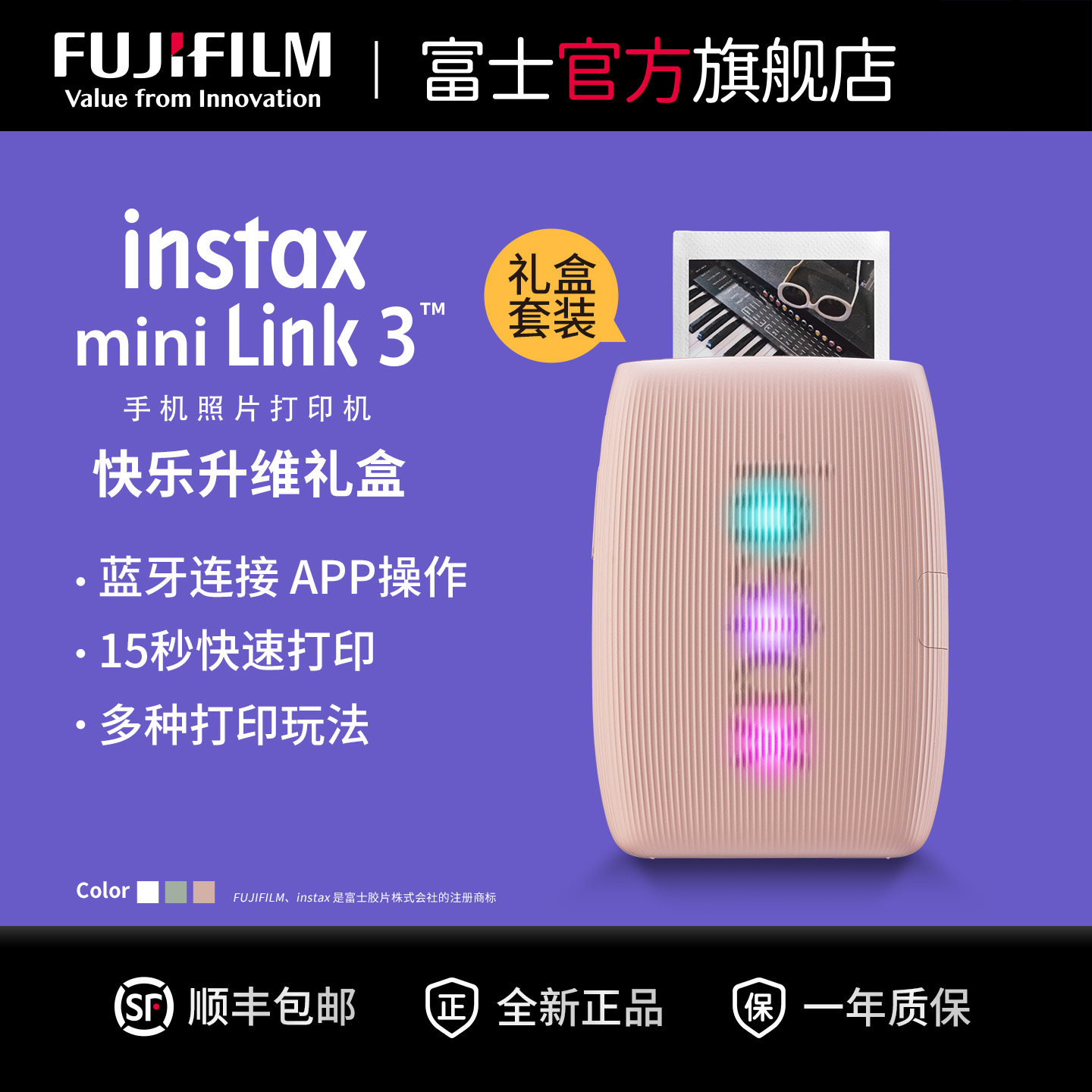 新款富士mini Link3升级手机照片打印机3寸拍立得相纸无线便携