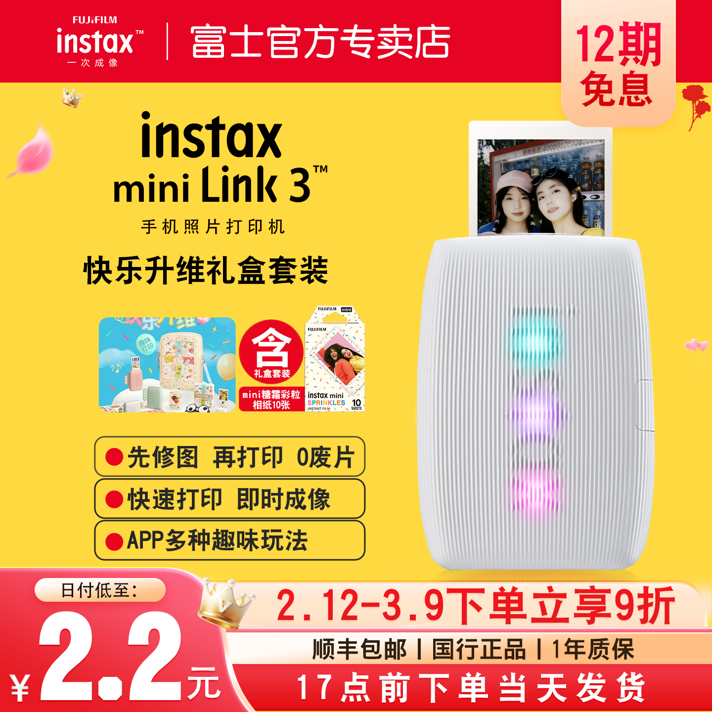 富士instax mini Link3一次成像手机照片打印机快乐升维礼盒含10张相纸便携迷你打印机link3