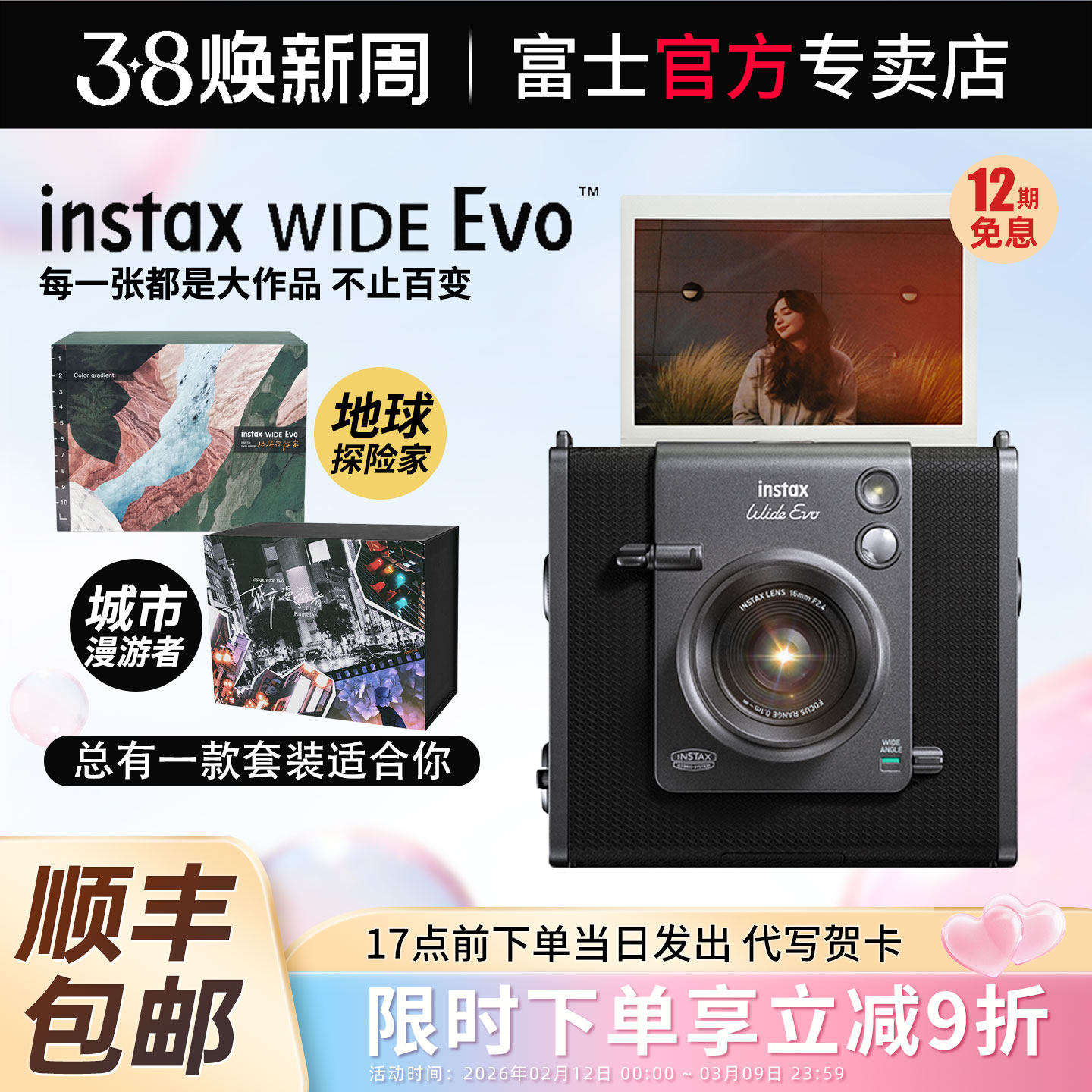 富士相机instax WIDE Evo 立拍立得宽幅一次成像可选打印数模相机