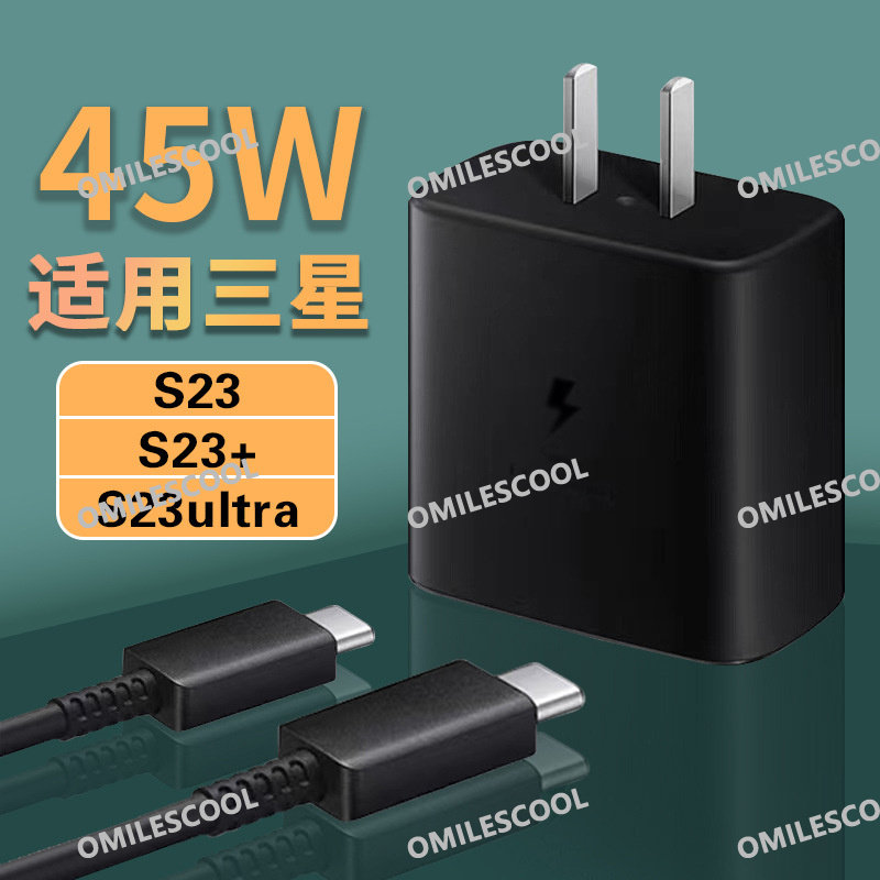 适用三星充电器45型号S23Ultra闪充note10+快充s22手机S10+S9插w头S20原s21/25fold3充电线type-c数据线S8 s7