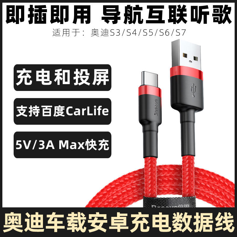 适用于奥迪专用车载充电线S3/S4/S5/S6/S7车机互联carlife数据线华为三星手机投屏连接线导航usb转接线加长线