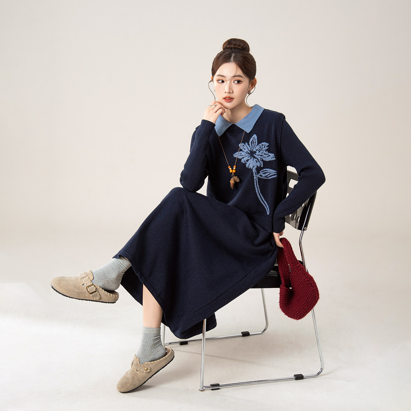 - 中长款毛衣裙连衣裙
